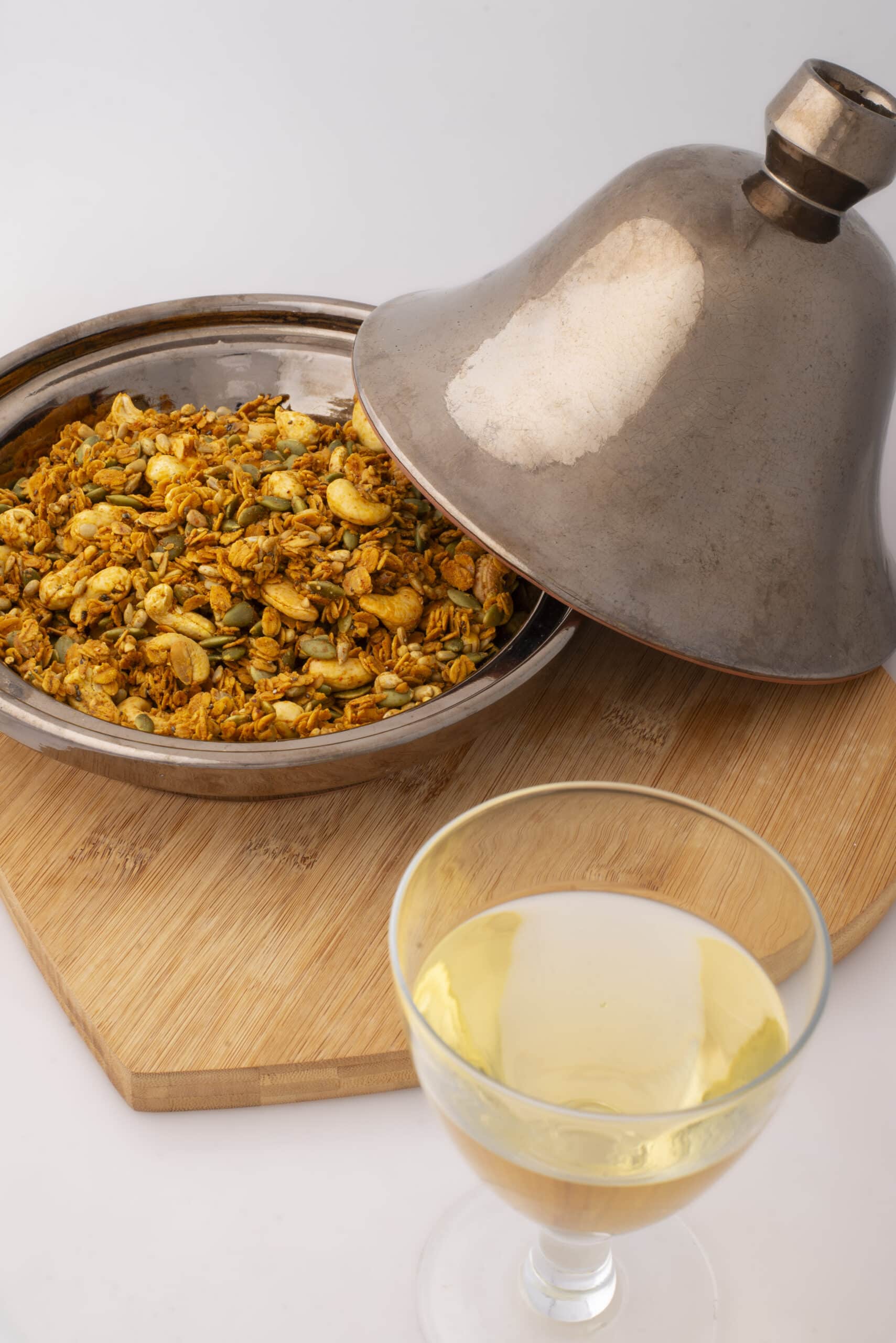 A scrumptious array of cashew nuts, pumpkin seeds, sunflower seeds and buckwheat all hand-baked and coated in aromatic spices and then baked until crunchy in cold pressed rapeseed and maple syrup.
