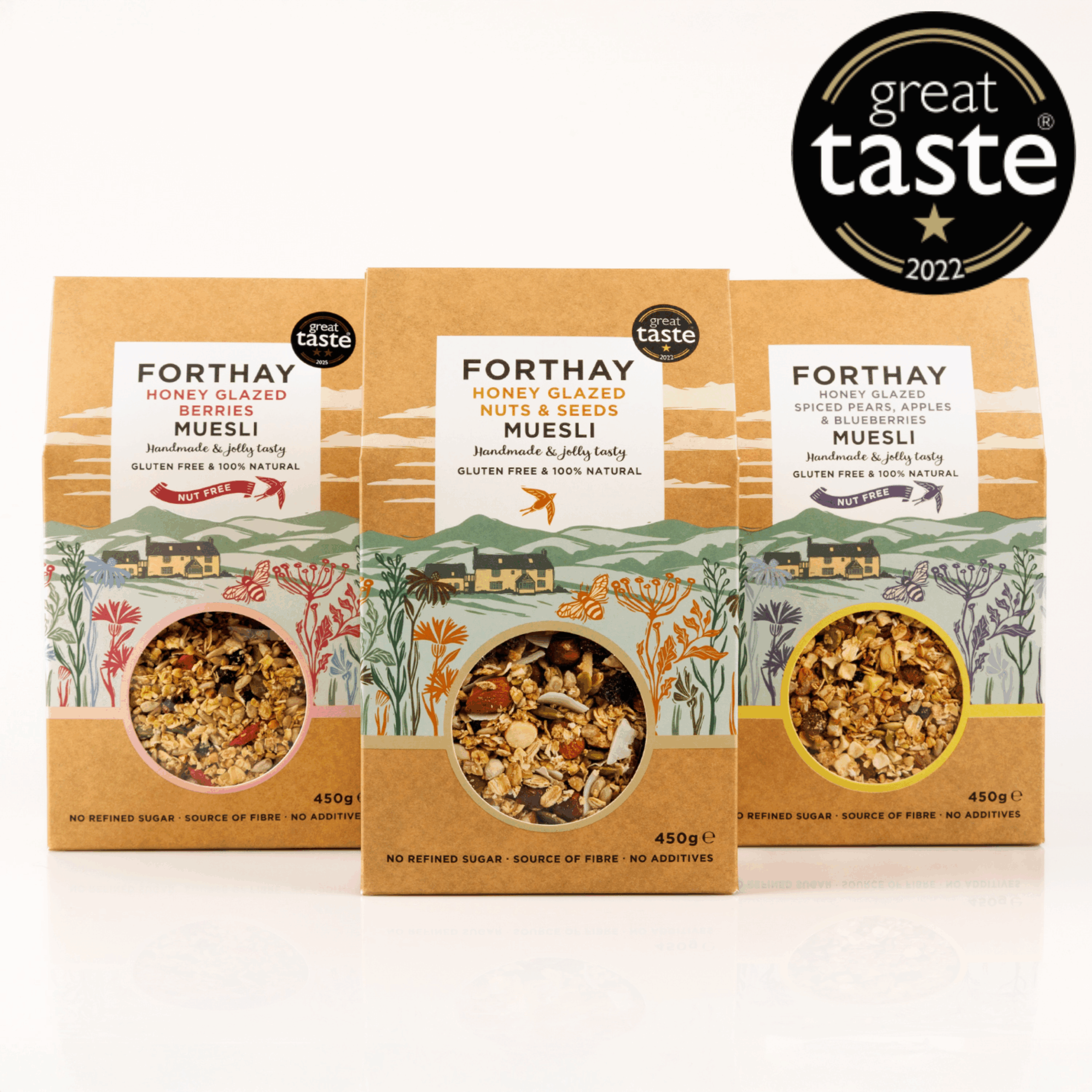 As you know, Forthay Muesli is a bit of a legend due to the fact, unlike normal muesli’s we take the time to bake our muesli in a spot of honey. This gives it a wonderful natural sweetness, a scrumptious crisp and then we pile on all of our delicious toppings to create our Piece de Resistance!